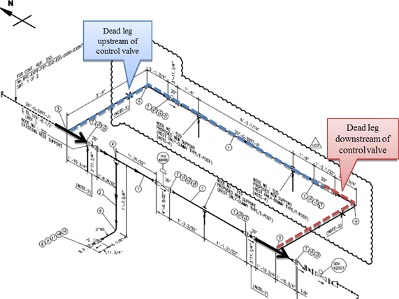 Under some flow condition the piping at the expansion loops was observed to exhibit very high vibration. The piping in this area is very loosely supported and any unbalanced force in the piping system will result in high vibration on these lines. If the FIV created by the dead leg near the control valve cannot be controlled, then increasing the stiffness of the expansion loops will help control vibrations. Wood provided recommendations on adding beams to support the elbows. In addition to these piping support recommendations, a pipe stress analysis is required to ensure the additional supports do not create thermal stress problems.