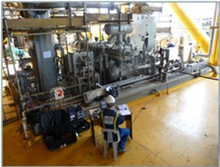 | Figure 2: Field testing for vibration on skid and structural beams |