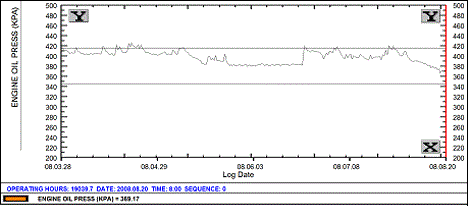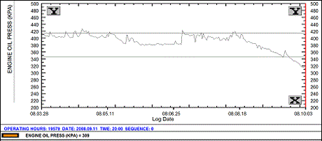 An engine oil pressure pattern anomaly was observed by a Wood analyst. The pressure was seen to be on a downward trend, though still at acceptable levels.