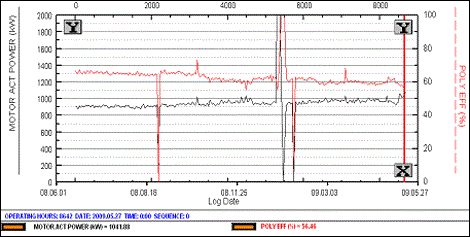 This example is from a motor driven centrifugal compressor. Performance was analyzed over a one year period using control system data.